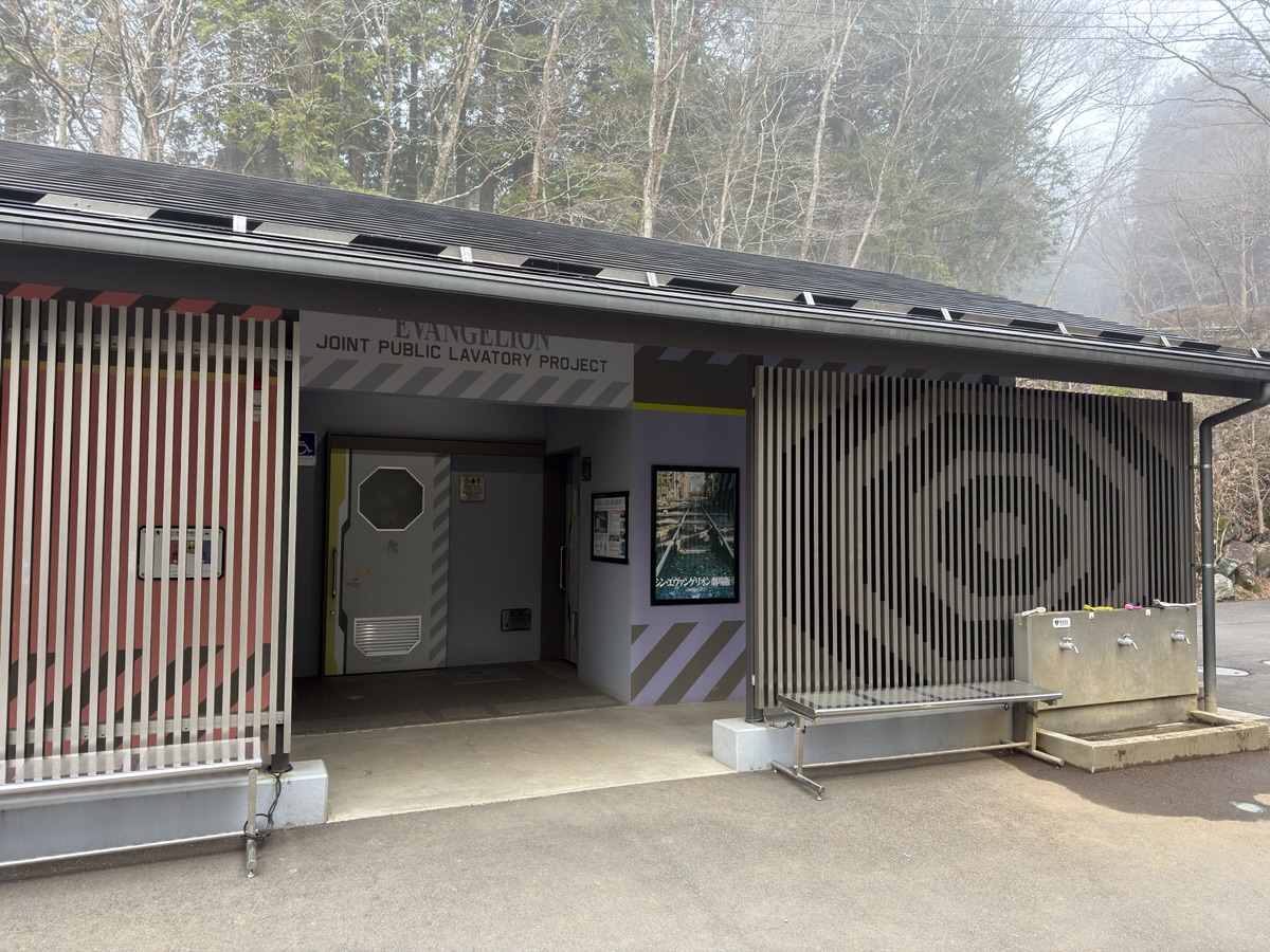 登山口の駐車場にエヴァンゲリオンのトイレありました笑